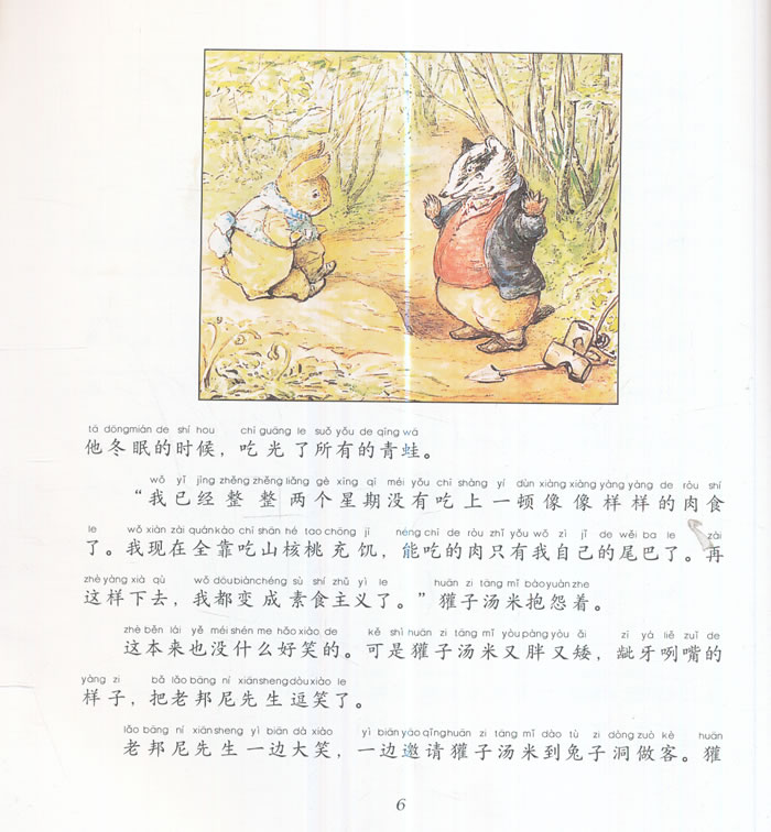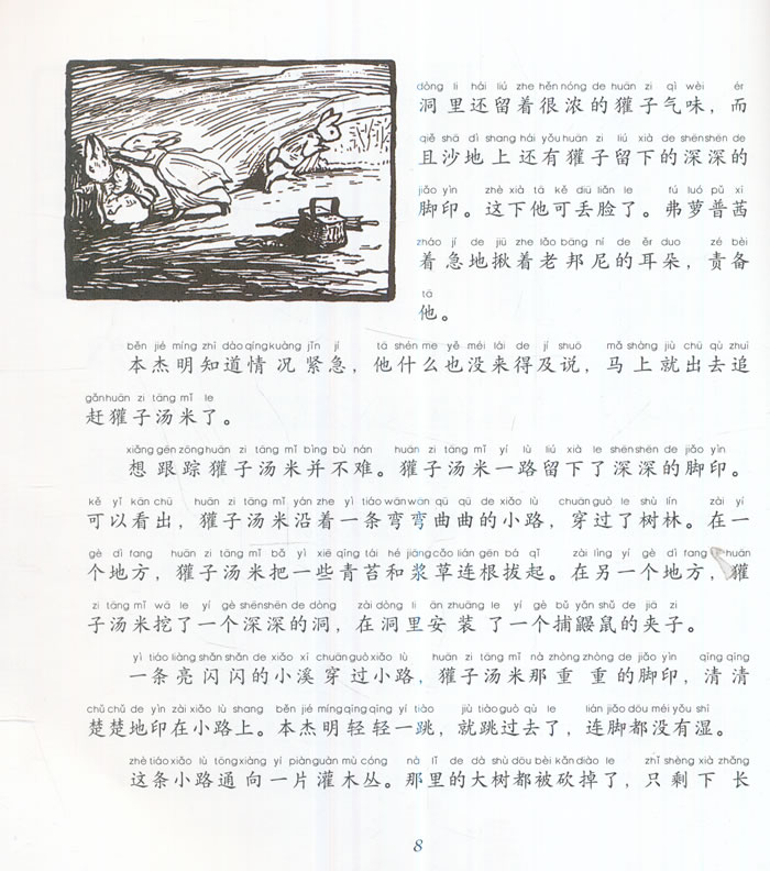 本套丛书共8册,程玮翻译,为3-10岁儿童注音版读物,书中塑造了一系列可爱动物形象,淘气又胆小怕事的彼得兔、冒失的本杰明兔子、尖酸贪婪的小老鼠塞缪尔.胡子、不喑世事又挺有主张的杰米玛鸭子、大智若愚,心胸开阔的平小猪……他们住在一个美丽的山村,永远不会老。
