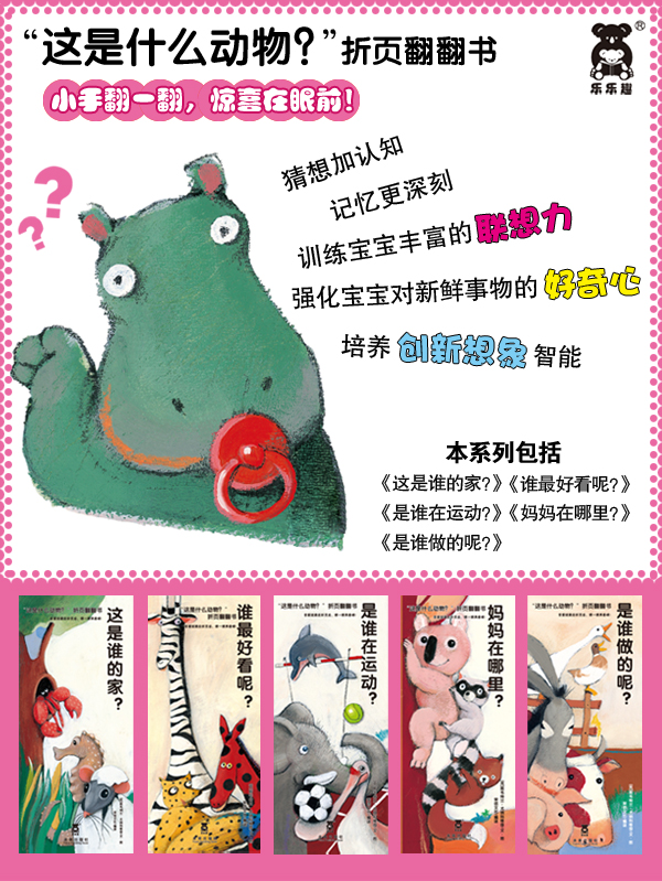 ★专家分析指出,想象是人进行创造活动的必要因素,它在儿童的学习和思维发展过程中具有重要作用。儿童时代是一个人的想象力迅速形成和发展的时期,在儿童成长过程中不断的提供个孩子有想象、创造力的游戏,图书等,十分有利于促进儿童想象力的发展。★学前儿童好奇心强,求知欲旺盛,是早期教育中培养儿童创造力的最佳时期,这套“这是什么动物?”折页翻翻书,用儿童最喜欢的动物作为想象力开发的引领者,用有趣的翻翻书形式,充分调动孩子的小手和大脑,让手脑结合,小手翻书,大脑思考书中的问题,发现答案,这一种有趣的好奇加探索的有趣学习模式,让看书变得更加生动有趣。★无形的看书过程中中训练孩子丰富的想象力,强化丢新鲜事物的好奇心,培养创新想象智能。