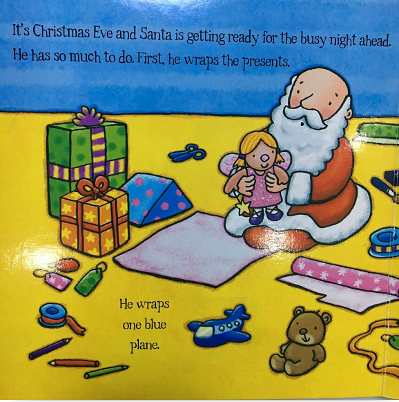 这是平安夜,圣诞老人要做的事情实在是太多了。首先,他要包装礼物。他将礼物包成大大小小的正方形。看,他包装了一架蓝色的玩具飞机,有的礼物用红色的包装纸,而有的用绿色的包装纸……很快,礼物都包装好啦。