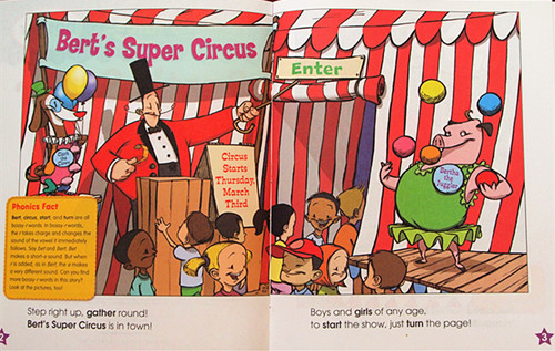 Step right up, gather round! Bert's Super Circus is in town! Inside there are words like bird, fern, and car to teach kids about the bold bossy r.