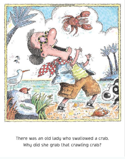 适合水平:亲子阅读,蓝思值AD390L,母语国家孩子2年级第2个月读本(BL2.2)适合年级:5岁-4年级A new beach version of the classic "There Was an Old Lady" song and favorite series!"There was an old lady who swallowed a shell.I don't know why she swallowed the shell.She didn't tell."