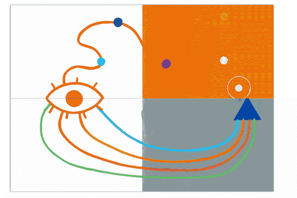 该书每一页都分为上下两部分,从第一页的起点开始,顺着线索指引,观察形状和色彩的变化,翻页寻找匹配的图案,直到找到完美的搭配。