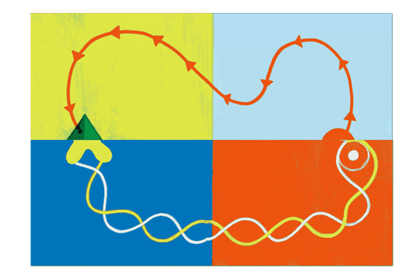 整本书28个画面前后相连,线索的颜色和形状不断变化,孩子需要专注地观察、分辨、尝试,直至找到合适的“另一半”,成功的每一步都是对孩子的耐心与专注力的挑战,并且种下了分析、逻辑推理的种子。