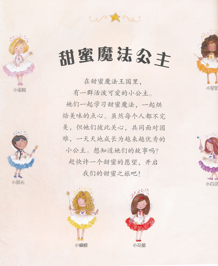 这套神奇的绘本故事书传递给孩子的力量是巨大的,被誉为“女孩打开幸福之门的第一套绘本”,由英国著名儿童文学作家曼迪·阿彻和凯迪克新人奖获奖插画师克里斯汀联袂打造。跟随6位活泼可爱又性格各异的小公主,孩子们走进神奇的甜蜜魔法王国,体验每位小公主的喜怒哀乐。在潜移默化中学习和掌握12种幸福魔法(自信、努力、谦虚、合作、感恩、宽容、勇敢、智慧、诚实、大方、热心、分享),成长为越来越优秀的小公主,为人生开启满满正能量。