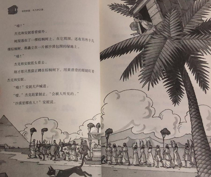 在经历了恐龙谷历险和古堡惊魂夜之后,神奇树屋又将杰克和安妮带到了古埃及。他们跟着一只黑猫和送葬的队伍,进入了金字塔。