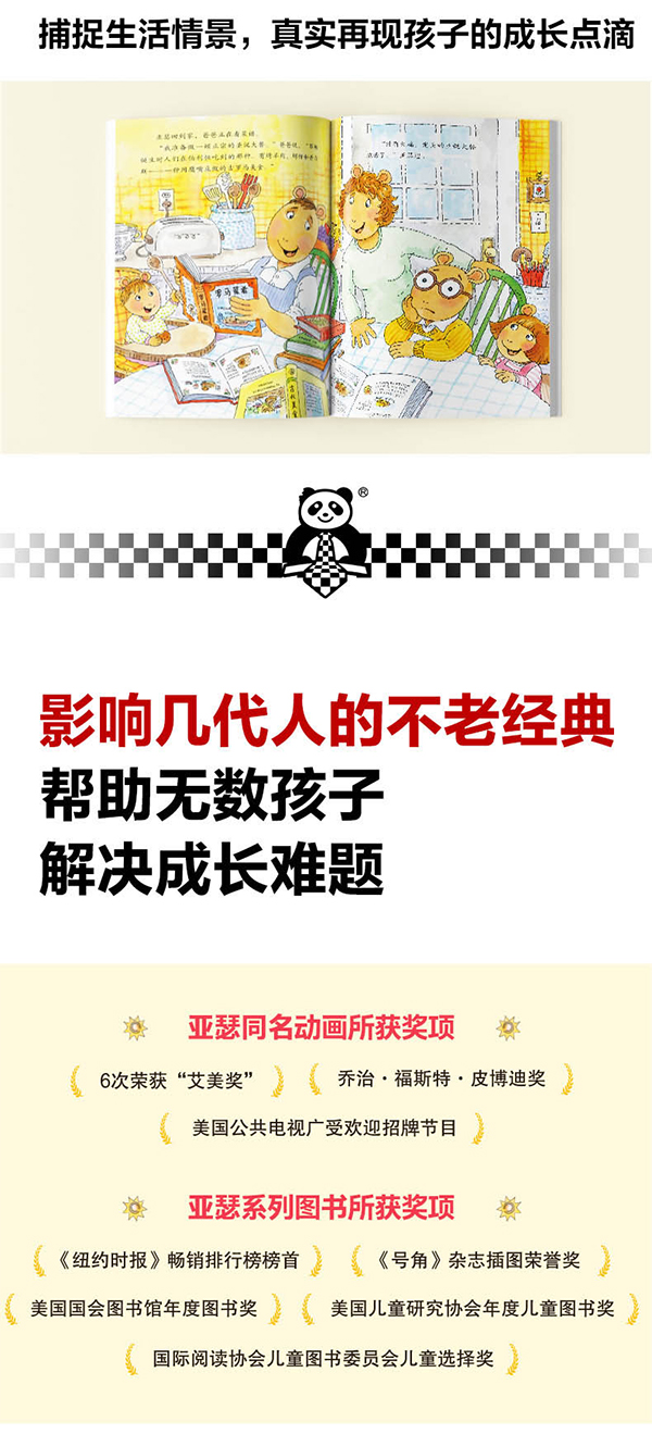 亚瑟系列早期的作品反映了我自己的孩子遇到过的困难。现在我的孩子们长大了,不再有亚瑟和朵拉那个年纪的烦恼,我就悄悄地聆听和观察,发掘大多数家庭关注的话题,希望能给人们带去一些帮助。 ——本书作者 马克·布朗 ◆亚瑟是“每个孩子”的化身,面临着来自家庭、学校和朋友的各种难题。威严的老师、刚出生的弟妹、戴眼镜的苦恼……这些亚瑟努力摆脱的烦恼能让每个孩子感同身受。通过亚瑟的经历,孩子们能够更好地理解问题,也能学习解决问题的方法。马克说:“zui有趣、zui好笑的事情发生在真实生活中。”他捕捉到生活中美好而幽默的瞬间,把它们展现在亚瑟的故事里。 ——纽约公共图书馆儿童服务部协调员