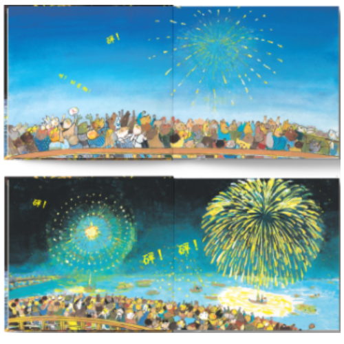 今天是烟花大会的日子,小狸猫朋吉和全镇的人都盼望着夜晚快快来临,这样就可以看到满天绚烂的烟花了,更让人兴奋的是,可以看到爸爸亲手制作的烟花在夜空绽放,真是太自豪了!朋吉答应妈妈,在去给爸爸送饭团的路上,一边走一边玩,当大街上的人们看到朋吉,都以为烟花大会要开始了,都匆匆放下手里的工作,跟在朋吉的身后,生怕错过这一年一次的夏日盛会。人越聚越多,把街道都挤得水泄不通了,人们早早地就聚集到了江边,可烟花大会会提前开始吗?