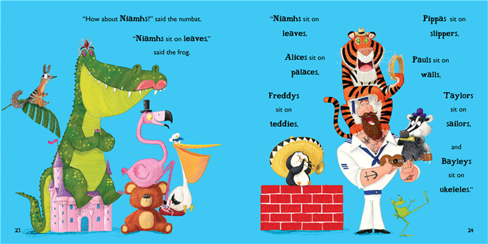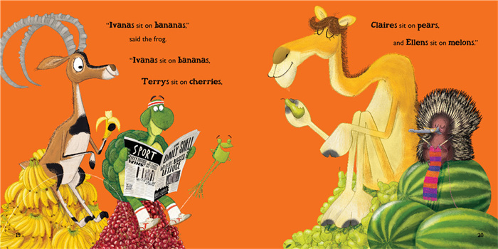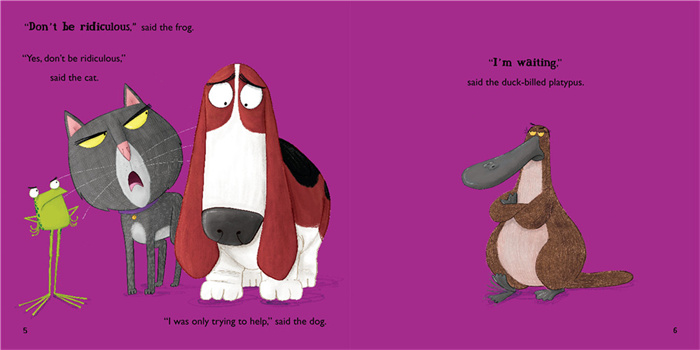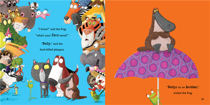 《青蛙总会有办法》是红房子图书奖作家和罗德·道尔幽默童书奖绘者德联袂打造的爆笑《自然拼读趣味绘本》的续集,一共有两册:《嗨,猫咪!》,《嗨,鸭嘴兽!》。其中《嗨,猫咪!》入围2017年英国图书奖,获得2018年英国儿童图书联合会少儿组年度最佳绘本奖(4-11岁)。 在《嗨,猫咪!》一书中,按照青蛙的最xin规则, 猫cat得坐到gnat小飞虫上去。猫的屁股可就遭罪了;狗说:“你(cat)为什么不坐到mat上去呢?”……于是,三个小动物又开始了关于单词押韵的游戏。这一次,青蛙让小马、小鸡、羊驼等小动物都参与了进来,韵词更丰富,故事更有趣。而且,让猫最开心的就是,他在不违反青蛙制定的规则的前提下,成功地摆脱了小飞虫,坐到了狗的身上。小朋友在快乐阅读的过程中,能够推断这些单词的拼读规律,从而达到看词能读的目的。 在《嗨,鸭嘴兽》中,按照青蛙的规则,每个动物得坐在跟自己的学名押韵的地方,例如猪hog坐到齿轮clog上,小鸡chick坐到砖头brick上……这可苦了鸭嘴兽duck-billed platypus,以及身后一大群找不到坐的地方的动物了。不过青蛙总会有办法!他问清楚了动物