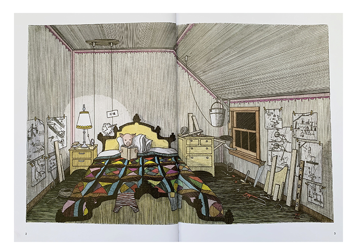戈德堡装置都由杠杆、滑轮、天平、弹簧、斜面等一系列物体组装而成,综合运用了各学科知识,被称为STEAM教育之祖。《不怕黑自动关灯装置》——利用简单机械的连锁反应完成,我们先来看这本《不怕黑自动关灯装置》。小猪的爸妈要求小猪晚上八点关灯睡觉,但是小猪说自己关着灯睡不着。于是小猪想了一个办法……