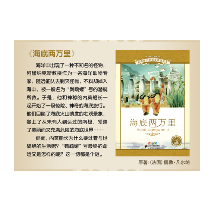 “科学幻想小说之父”儒勒?凡尔纳天才之作,跌宕起伏的故事情节,扑朔迷离的人物命运,奇幻美妙的细节,同时融入了丰富详尽的科学知识,让孩子在美妙愉快的阅读体验中欲罢不能。让我们跟随尼摩船长的“*”号,去探索那美丽有充满危险的海底世界吧。