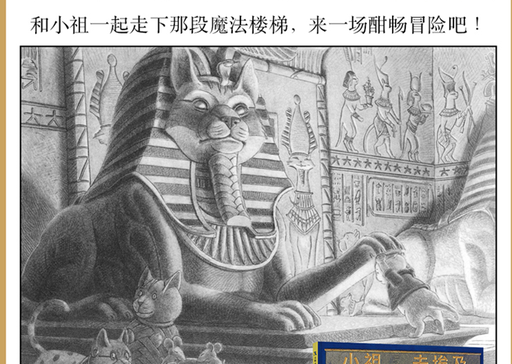 猫咪小祖跟其它猫咪不一样,他喜欢做梦、渴望冒险。他有一个船长叔叔,叔叔有个人类朋友玛丽亚。这年秋天,他正在玛丽亚家的后花园,电话铃响了。玛丽亚去接电话,却很久没回来。小祖在桌子上发现玛丽亚留下的一张语意模糊的字条,好像是叔叔罗伊有了麻烦。他循着玛丽亚的脚步来到图书馆,发现书架后面有一座用书堆成的楼梯盘旋而下,好像是一条路,而且这条路竟然通向埃及的一个地下猫穴……他能跟玛丽亚汇合吗?他能找到叔叔吗?