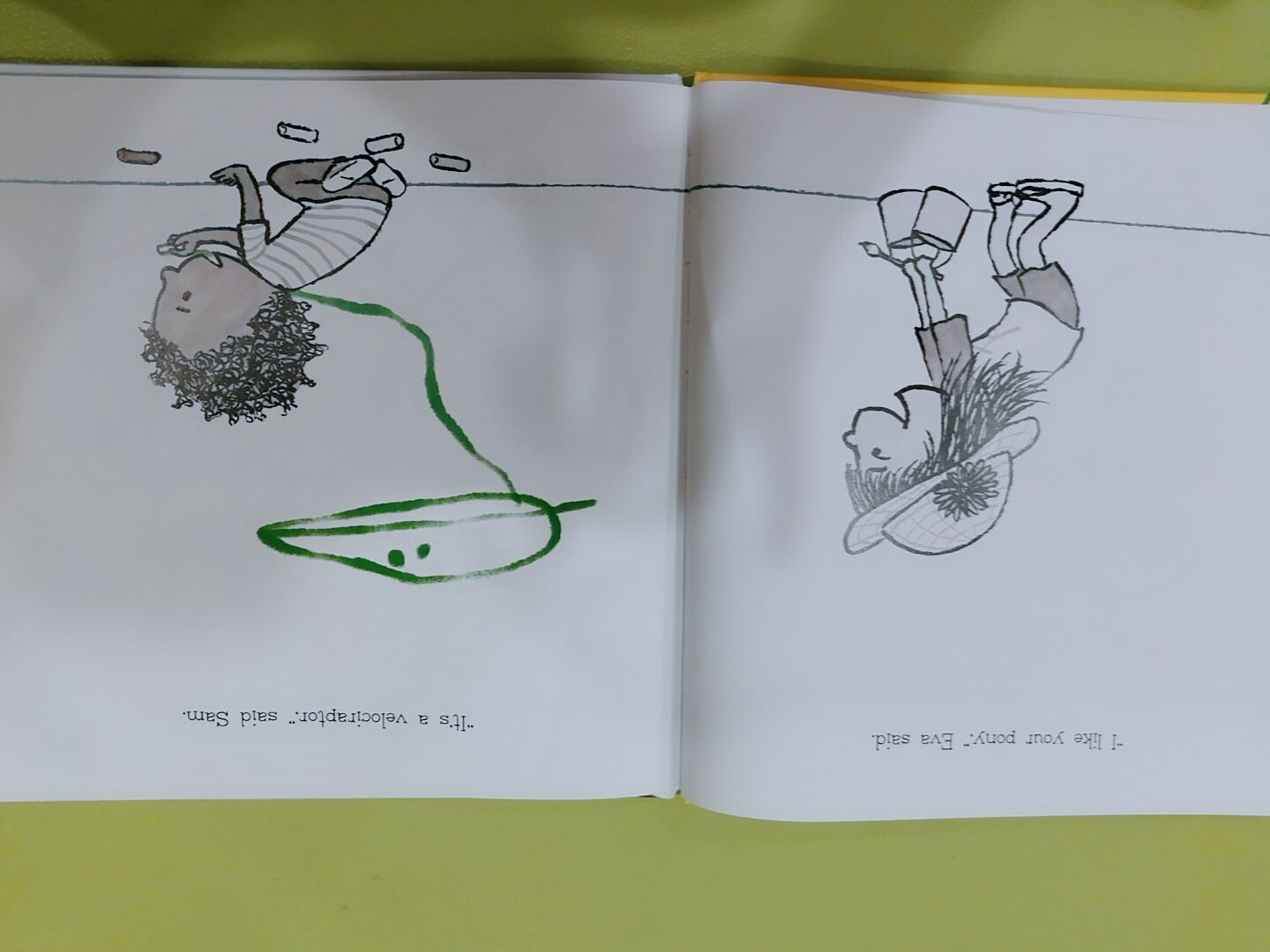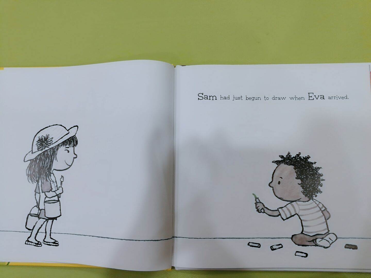 Sam does not want Eva to add to his drawing,but when the scene comes to life and gets out of control,she helps him escape.