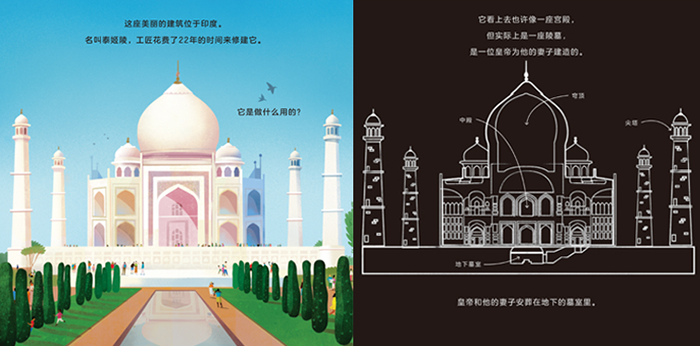 全书采用独特的光影透视效果,用手电筒从互动页的背面照一照,或者把书页掀开,将互动页的背面对着光,从而在互动页的正面展示出内部结构和场景。发现隐藏在画面背后的“秘密”知识,整个过程从“看不到”到“解密”,充分满足孩子的好奇心。