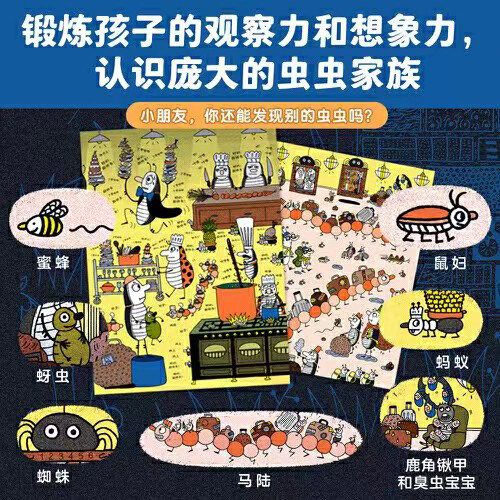 一个克服恐惧,收获友谊的故事,充满惊险/悬疑/温馨和治愈。 度假归途中,屎壳郎“食??”一家遭遇了暴风雨。他们不得不在前面的昆虫旅馆里住一晚。可是,所有的虫子都想到了一块儿,旅馆里面“虫满为患”。后,一家人被安排进了一个很小的房间,小苏西被夹在爷爷的臭脚和妈妈的呼噜声之间睡不着。出于好奇,小苏西决定动身去探索这家旅馆.…..从低到高,小苏西一层一层往上爬。她拜访了旅馆里每一层的住客:厨师长,蝉夫人,熊蜂,蜉蝣,瓢虫….….但所有人都警告她:“要当心那个可怕的‘大家伙’,一到晚上就会在走廊里晃悠!”可是,没人能阻止一只勇敢的小屎壳郎,特别是,当她想在睡前读一本书的时候...苏西充满好奇心,大胆而无畏,尽管听了这么多“大人的忠告”,但她依然推着“粪球旅行箱”,义无反顾地探索这间旅馆,终亲自揭开了“大家伙”的真面目,“它”到底是谁呢?这是一个充满惊险悬疑又温馨治愈的故事。法国童书作家克莱尔·施瓦茨用充满想象力的故事和画面构建出一个奇呓诡谲的昆虫世界。在阅读过程中,小朋友会自然地代入主必小苏西的角色,睁大好奇的眼睛,开启一场昆虫旅馆奇妙夜的冒险之旅。