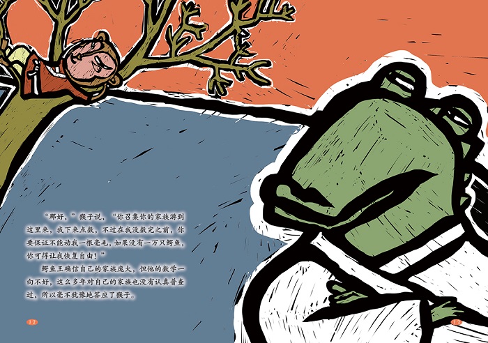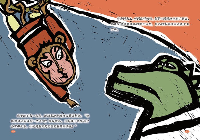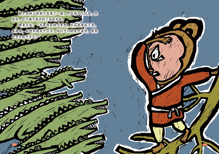 本书是故事绘本,内容改写自民间故事,配上精美插图。描绘一只猴子落入了鳄鱼王的领地,凭借自己的聪明勇敢,让鳄鱼王呼唤来成千上万的鳄鱼,为自己在海面搭建了一座浮桥,从而死里逃生,重返陆地。故事简单有趣,蕴含着对小读者的教育意义。这是一个典型的体现聪明才智的故事,正面表现猴子的因勇敢机智而脱险,也从侧面讽刺鳄鱼王因愚蠢而付出代价。故事情节起伏跌宕,为孩子带来智慧与愉悦,紧张与轻松相交织的心情体验。