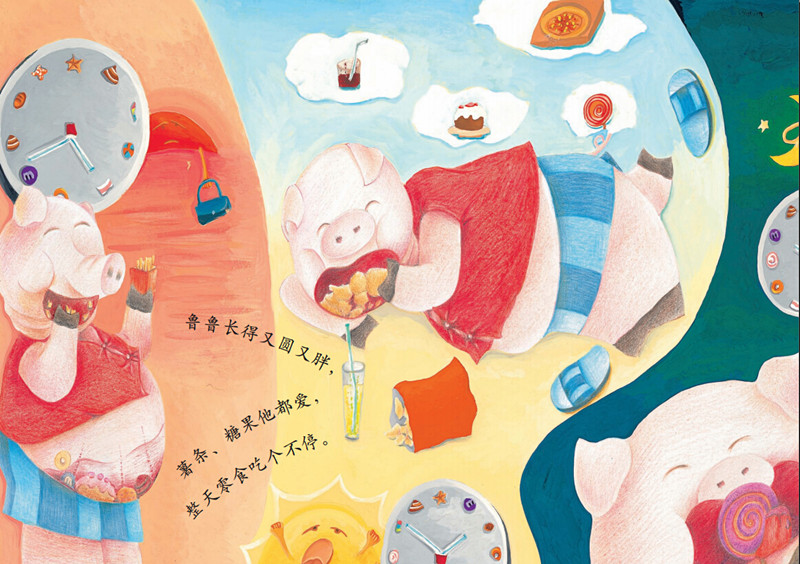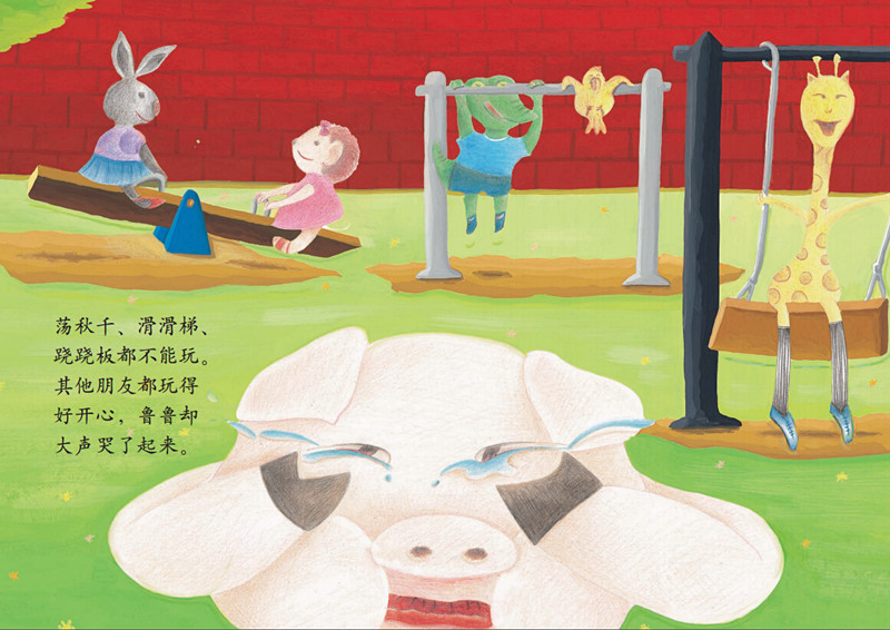小猪鲁鲁太胖了,荡秋千时秋千绳断了,滑滑梯时卡住了屁股,玩跷跷板时跷跷板一动也不动,鲁鲁伤心得哭了……。还好这只是一场噩梦,鲁鲁决定今后少吃零食、多运动!