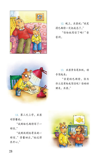 巴斯特要去爸爸家待一个月,临走时,他说好会给亚瑟寄明信片,可是,好些天过去了,伙伴们都收到了巴斯特的信和明信片,只有亚瑟每天都巴巴地去看邮箱,却什么也没收到。亚瑟以为巴斯特已经把自己忘记了,他们还会是好朋友吗?一起来瞧瞧吧!