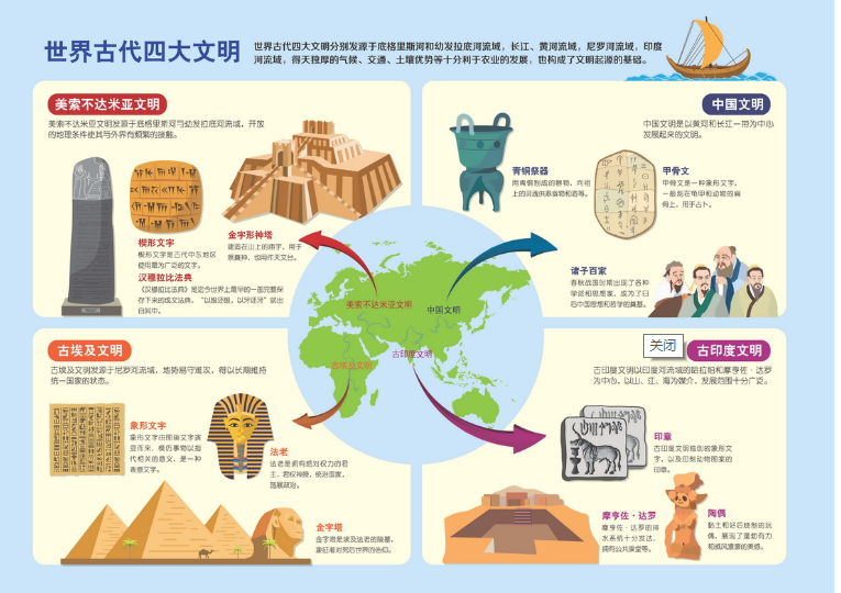 本书以“古文明”为主题,让孩子们跟随主人公一起,回顾和体验美索不达米亚文明,埃及文明,古印度文明和中国文明,将这些古文明中的重要地域、人物、事件等穿插在漫画故事中进行讲述,符合孩子们的阅读旨趣,吸引他们的注意力,并丰富他们的历史知识,是一本具有很强可读性的历史知识普及图书。