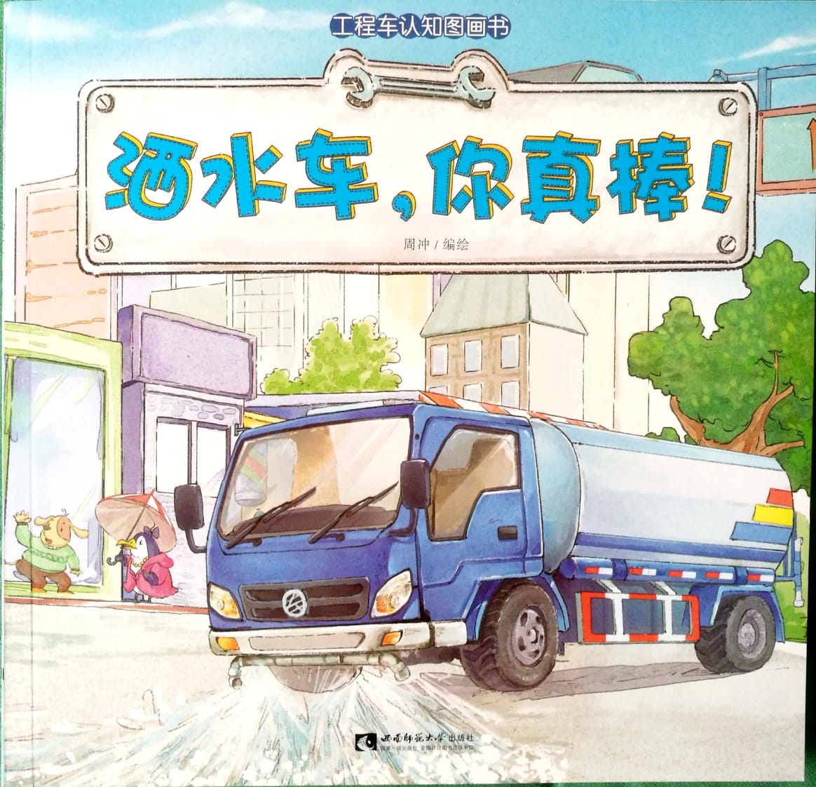 本书为“工程车认知图画书”之一,丛书是一套专门为3至9岁的小朋友编绘的科普读物,选取的都是小朋友们*感兴趣的主题——工程车,其中的人物都是以小动物为对象。插图采用Q版的写实风格,还原了工程车的形象和工作场景。此外,书中还巧妙地设置了“我知道”小栏目,有助于培养孩子的专注力和观察能力。其语言生动活泼,插图精致美观,故事与知识点做到了有机融合,提高了孩子的阅读积极性。《洒水车,你真棒!》一书讲述了一辆洒水车在冬日铺满积雪的路上,喷洒融雪剂的时候,却被村民们误会了。洒水车很生气,他下定决心要罢工,什么事也不做。可是,洒水车只是说说,热心肠又急性子的他不仅给路边的大树浇水,还给马路“洗澡”,此外,在停水的时候,提供应用水给村民们使用。本书用大量图片少量文字,有趣的故事带领幼儿认识洒水车的结构部件、工作程序与场合等。