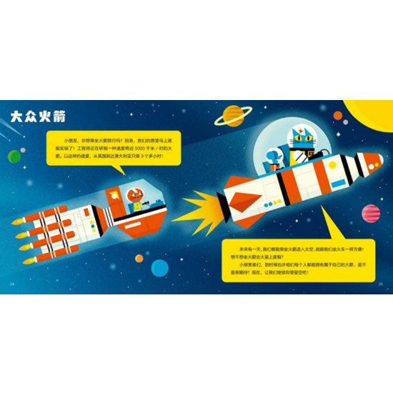 《向太空出发》系列图书共4册,分别为《来看星星吧》《我们的太阳系》《火箭发射啦》《探索外太空》,是面向3~6岁儿童的一套低幼太空主题的科普书。 从幼儿园、幼小衔接到小学,孩子处于理解和探索世界的知识敏感期,本书设置太空猫等角色,在穿梭浩瀚宇宙的探秘旅行中,深入浅出讲解太空知识,涉及数学、物理、技术、工程等多学科知识,给孩子带来深远的科学思维启迪。图书四个主题,逐层深入,通过新奇的知识和有趣、多元化的讲述方式,让知识有序衔接,满足孩子对太空的一切好奇,让孩子零基础学习前沿科学,轻松推开了解宇宙的大门。 在人类之前,竟然已经有别的动物上过太空了?继月球之后,火箭将带我们去的下一站是哪里?想不想去一趟遥远的外太空,来一场探索浩瀚宇宙的长途旅行?赶快加入太空猫教授的团队,让火箭带着我们冲上云霄!说不定在未来的某一天,我们还可以搭上飞得跟光一样快的宇宙飞船,或...