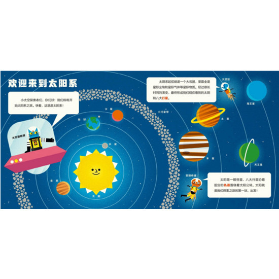 《向太空出发》系列图书共4册,分别为《来看星星吧》《我们的太阳系》《火箭发射啦》《探索外太空》,是面向3~6岁儿童的一套低幼太空主题的科普书。 从幼儿园、幼小衔接到小学,孩子处于理解和探索世界的知识敏感期,本书设置太空猫等角色,在穿梭浩瀚宇宙的探秘旅行中,深入浅出讲解太空知识,涉及数学、物理、技术、工程等多学科知识,给孩子带来深远的科学思维启迪。图书四个主题,逐层深入,通过新奇的知识和有趣、多元化的讲述方式,让知识有序衔接,满足孩子对太空的一切好奇,让孩子零基础学习前沿科学,轻松推开了解宇宙的大门。 在人类之前,竟然已经有别的动物上过太空了?继月球之后,火箭将带我们去的下一站是哪里?想不想去一趟遥远的外太空,来一场探索浩瀚宇宙的长途旅行?赶快加入太空猫教授的团队,让火箭带着我们冲上云霄!说不定在未来的某一天,我们还可以搭上飞得跟光一样快的宇宙飞船,或...