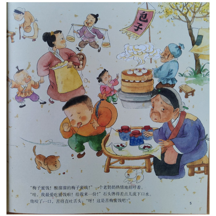 主人公石头在魔法福袋的帮助下穿越到古代的集市,发现吃的有苦有咸,原来是被小河怪霸占了水源,石头去寻找不老泉让小村的水恢复清凉的故事。涉及形声字9个:富、垂、花、岩、梅、盒、扶、沁、溢。全书用精美的绘画,生动的故事,结合传统的工艺,将汉字的起源和形声字的特点讲述得惟妙惟肖,引人入胜。在阅读中图解了它们成为字的过程,行文中用红色突出。让家长和孩子阅读时,在故事和历史文化中爱上汉字,爱上中国文化。全书的设计非常独到,有对汉字的介绍,有人物介绍,有猜谜语,还有对本书象形字的汇总,便于阅读后的总结和体会,在传统文化的出版中有重要的意义。
