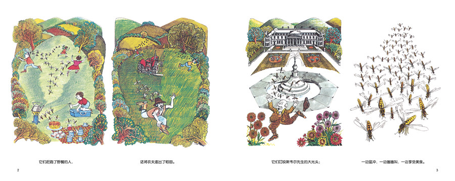 本书讲述了一个虚构的小山村里发生的故事。某天,这个小山村遭到了四百万黄蜂的侵害,于是村民们决定制作一个巨大的果酱三明治来诱捕这些惹人厌的昆虫。