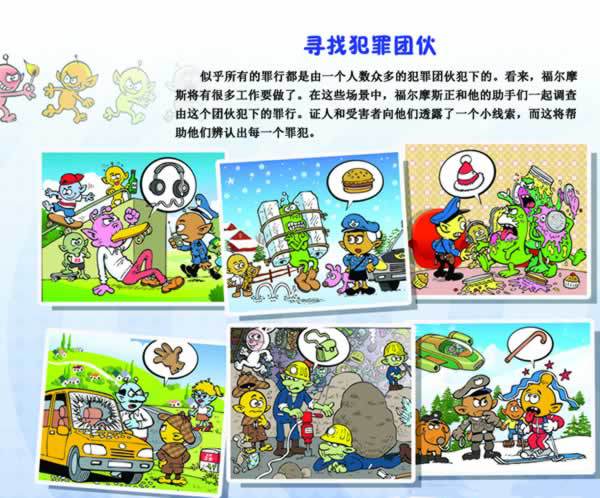 1. 游戏书常用的栏目都有。逻辑思维,比较,找不同,谜宫,配对,时间排序,寻找。优点是图片比较有趣,并且复杂,不像国内游戏书,一下就找到答案了。有一页,把人物配对,根据每个人物的一句话来判断谁是谁,要配上将近一百个人物。挺好玩的。