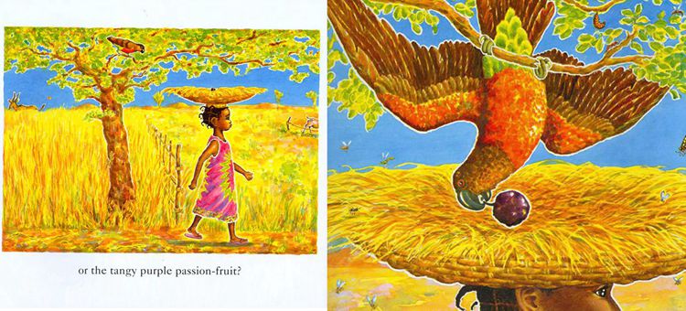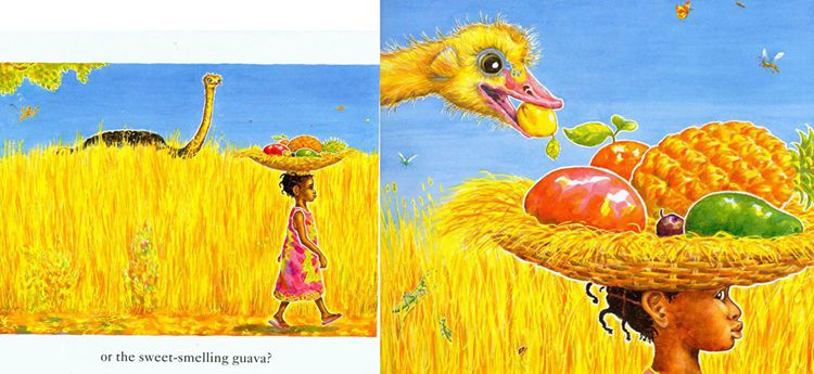 Handa puts seven delicious fruits in a basket to take to her friend, Akeyo. Which fruit will Akeyo like best, she wonders - the yellow banana, the sweet guava, the juicy orange, the ripe mango, the spiky pineapple, the creamy avocado, or the tangy passion fruit? As Handa makes the long walk to the next village, carrying the basket on her head, a monkey, ostrich, zebra, elephant, giraffe, antelope, and parrot steal her fruits, one by one. But little do they know that Handa has an even bigger surp ...