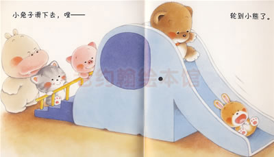 游戏开始了,小宝宝们排好队!大象滑梯真好玩,谁接着小河马?谁接着小熊?谁排在了小猫后面?企鹅秋千真有趣,数一数,有几个动物宝宝在排队?他们都做了哪几种游戏?咦,大家又在排队了,这回要干什么?大家都来排好队,一个接一个!