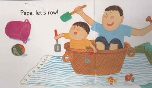 There are a boy and his papa.They are in a basket. What are they doing?Do you want to read their story?Ok. Here we go!有一个男孩和他的爸爸。他们在篮子里。他们在干什么?你想读他们的故事吗?好吧。来了!