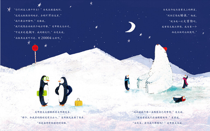 外出野餐的企鹅一家竟然到了北极,还遇到了北极熊。