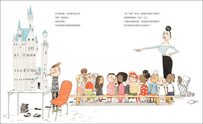热爱建筑的乔伊总是充满创意和行动力。他用尿裤和胶水建起比萨斜塔,用桃子和苹果搭出哥特式教堂,还用泥巴建起一座巨大的狮身人面像!可他却偏偏碰到一位讨厌建筑的老师,她让乔伊拆掉粉笔城堡,还发出警告——不准在学校建东西!乔伊该怎么办呢?他还会坚持自己的梦想吗?
