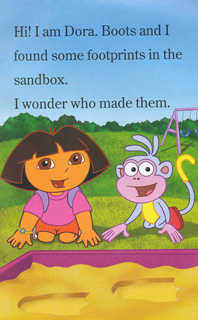 Dora and Boots found some footprints in the sandbox. Whose feet do they belong to? Follow them to find out!
