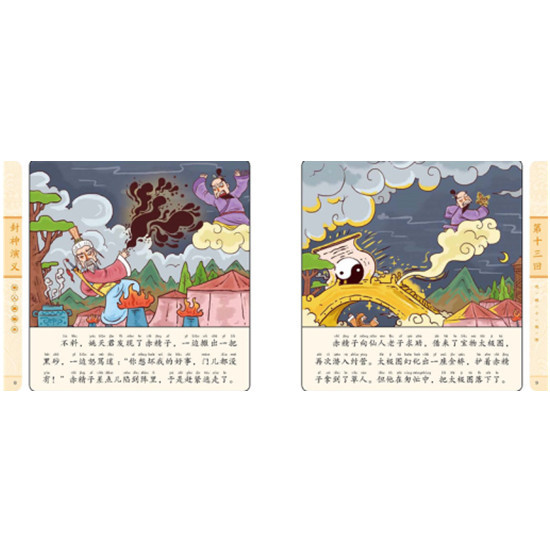 《封神演义》是明清神魔小说的扛鼎之作,它兼具《西游记》的趣味性和想象力、《三国演义》的历史厚度和曲折情节、《水浒传》的英雄气概等,已成为数代人心中不朽的经典。 《封神演义幼儿美绘本》是一套专为3~8岁儿童量身打造的经典名著启蒙读物。本书以经典名著《封神演义》为蓝本,站在儿童视角,从原著100回中精心筛选与改编30个经典故事。全书共10册,每册3个故事,既保留了原著的故事主线,又浓缩了原著的精华,带领孩子在想象力爆棚的精彩故事中培养善良正直、勤学善思、乐于合作等优秀品质,让孩子从小亲近、爱上中国古典名著。 全书600余幅诙谐漫画风的精美插图,完美再现原著精彩内容;大字注音、图文并茂,有效减轻低年龄段孩子的阅读负担;每册贴心附赠丰富的人物预告、趣味问答、伴读音频,充分激发孩子的阅读兴趣,给孩子提供舒适的阅读体验和多样的阅读方式选择,既适合家长与学龄前孩子亲子共读,又适合小学低年级孩子自主阅读,引导孩子轻松阅读名著,为孩子打开经典阅读之门。