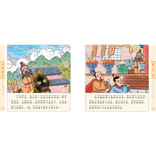 《封神演义》是明清神魔小说的扛鼎之作,它兼具《西游记》的趣味性和想象力、《三国演义》的历史厚度和曲折情节、《水浒传》的英雄气概等,已成为数代人心中不朽的经典。 《封神演义幼儿美绘本》是一套专为3~8岁儿童量身打造的经典名著启蒙读物。本书以经典名著《封神演义》为蓝本,站在儿童视角,从原著100回中精心筛选与改编30个经典故事。全书共10册,每册3个故事,既保留了原著的故事主线,又浓缩了原著的精华,带领孩子在想象力爆棚的精彩故事中培养善良正直、勤学善思、乐于合作等优秀品质,让孩子从小亲近、爱上中国古典名著。 全书600余幅诙谐漫画风的精美插图,完美再现原著精彩内容;大字注音、图文并茂,有效减轻低年龄段孩子的阅读负担;每册贴心附赠丰富的人物预告、趣味问答、伴读音频,充分激发孩子的阅读兴趣,给孩子提供舒适的阅读体验和多样的阅读方式选择,既适合家长与学龄前孩子亲子共读,又适合小学低年级孩子自主阅读,引导孩子轻松阅读名著,为孩子打开经典阅读之门。