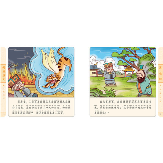 《封神演义》是明清神魔小说的扛鼎之作,它兼具《西游记》的趣味性和想象力、《三国演义》的历史厚度和曲折情节、《水浒传》的英雄气概等,已成为数代人心中不朽的经典。 《封神演义幼儿美绘本》是一套专为3~8岁儿童量身打造的经典名著启蒙读物。本书以经典名著《封神演义》为蓝本,站在儿童视角,从原著100回中精心筛选与改编30个经典故事。全书共10册,每册3个故事,既保留了原著的故事主线,又浓缩了原著的精华,带领孩子在想象力爆棚的精彩故事中培养善良正直、勤学善思、乐于合作等优秀品质,让孩子从小亲近、爱上中国古典名著。 全书600余幅诙谐漫画风的精美插图,完美再现原著精彩内容;大字注音、图文并茂,有效减轻低年龄段孩子的阅读负担;每册贴心附赠丰富的人物预告、趣味问答、伴读音频,充分激发孩子的阅读兴趣,给孩子提供舒适的阅读体验和多样的阅读方式选择,既适合家长与学龄前孩子亲子共读,又适合小学低年级孩子自主阅读,引导孩子轻松阅读名著,为孩子打开经典阅读之门。