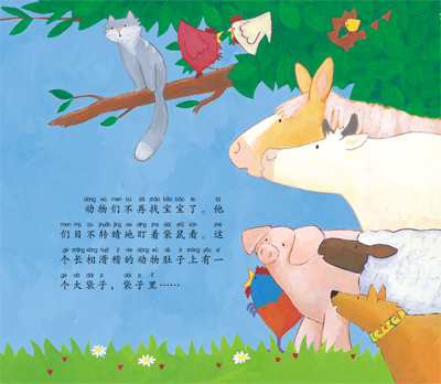 《有熊的地方就有麻烦》:一只棕熊看见了一只小蜜蜂,一只小蜜蜂也看见了一只棕熊。棕熊想要跟着小蜜蜂去找蜂蜜,但小蜜蜂却只想避开大熊赶快飞回家。于是,一场大追逐便开始了!不同的动物都有不同的心思,就像性格各异的孩子们,不过都显得那么可爱与单纯。