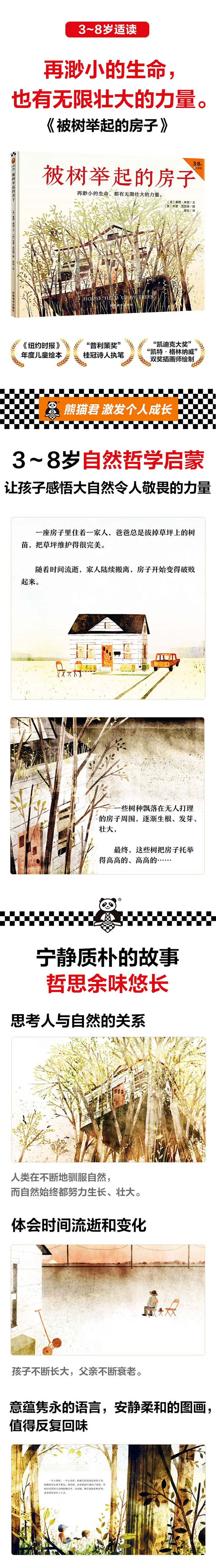 《被树举起的房子》 新房子刚建成时,孤零零地立在一方平地上。 四周当然也有新植的草坪围绕,可是没有一棵树。夏天见不着树荫,冬天也听不到光秃秃的细枝条在寒风中沙沙作响。 曾经这儿也有过树,但它们都被砍了,好腾出地方造房子。连残留的树墩都被拔出来烧了。 但在空地的两旁,各种各样的树自由生长,有枫树、有榆树、有白蜡树、有朴树,还有三角叶杨,它们都爱与风声和鸟鸣合奏。到了春天,当风从树林子那边吹来,住在房子里的小孩就能闻到树上那些小小的、绿色的花儿的甜味。树下,是繁密的灌木丛,你得手脚并用,才能钻进去,到达林子中央那阴凉的秘密领地。