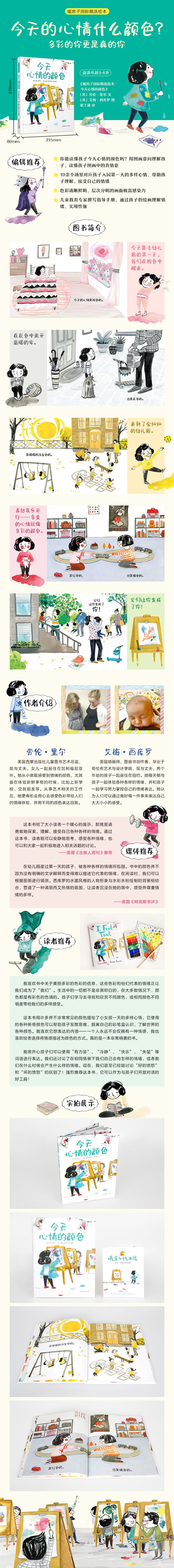 在幼儿园度过*天的孩子,被各种各样的情绪所包围。书的每一页都在变化,每一页都有一个主颜色!这本书用多样的颜色告诉孩子,正是多种多样的情绪,造就了像调色板一样多彩、与众不同的你!请勇敢地探索、理解、接受自己各种各样的情绪吧!