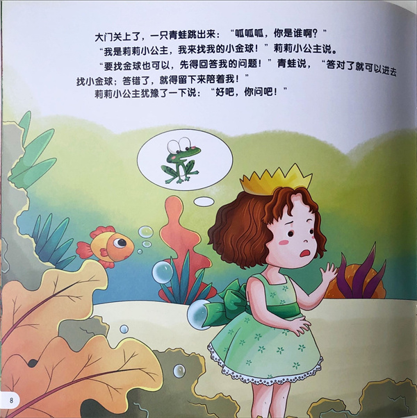 可爱的小公主丢了她最爱的小金球!想要拿回小金球的小公主遭到了青蛙的刁难,一只青蛙,两只青蛙,十只青蛙......小朋友,你能数得清十只青蛙有几张嘴、几只眼睛、几条腿吗?