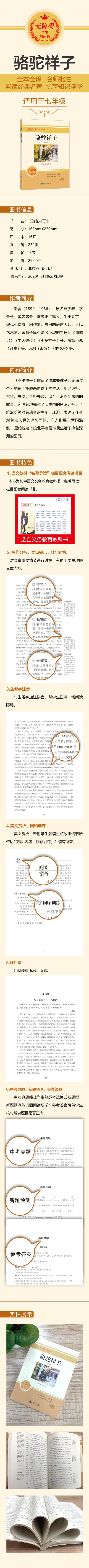 《骆驼祥子》是老舍的作品,讲述的是旧中国北平城里一个人力车夫祥子的悲剧故事。《骆驼祥子》描写了从农村流落到北京城里的祥子三起三落的悲惨遭遇,讲述了在黑暗的社会环境腐蚀下,祥子怎样由一个善良、本分、富有正义感的人力车夫,在生活上、人格上、政治上一步步走向堕落,最后变得人不人鬼不鬼的历程。这部小说的现实主义深刻性在于,它不仅描写了严酷的生活环境对祥子的物质剥夺,而且还刻画了祥子在生活理想被毁坏后的精神堕落。