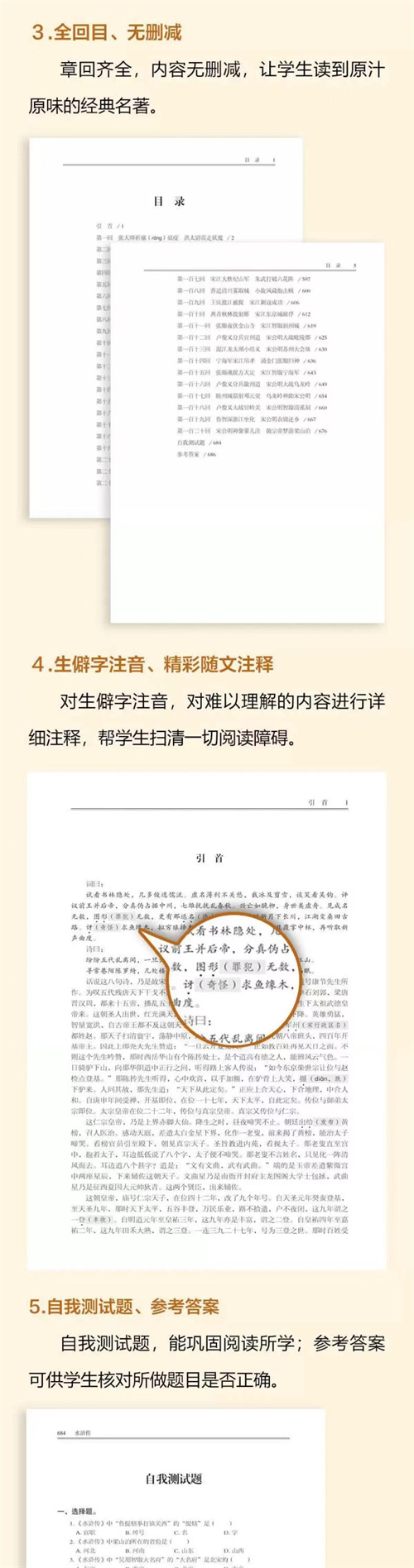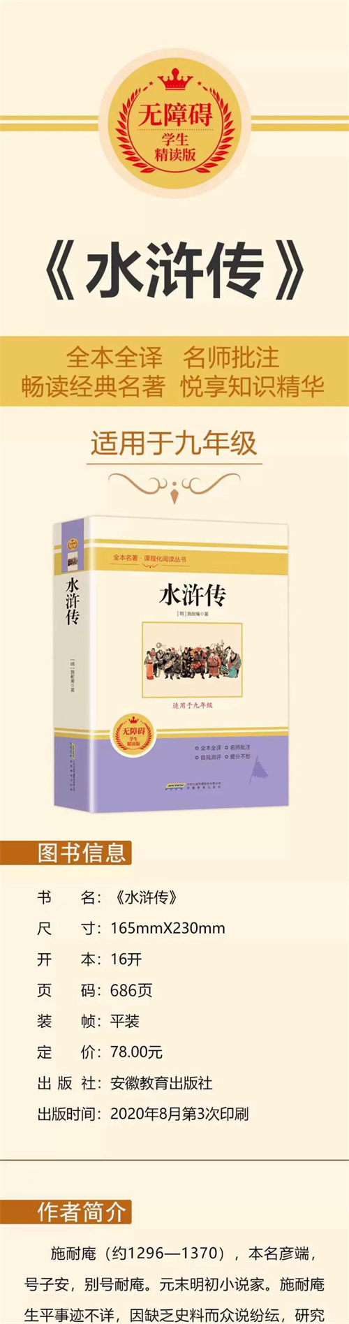 《水浒传》是中国历史上第一部歌颂农民起义的长篇章回体小说,描写了北宋末年以宋江为首的农民起义军由小到大、逐步发展的故事,刻画了一百零八个英雄好汉的人物形象,反映了封建社会的腐败、黑暗,暴露了封建统治者的罪恶,深刻揭示了官逼民反的社会现实。