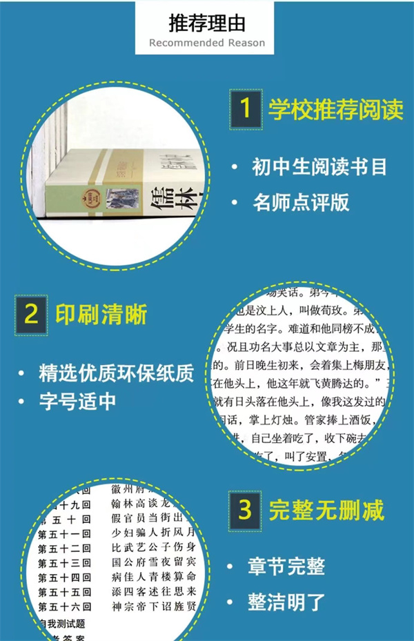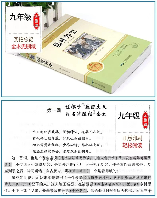 《儒林外史》是清代吴敬梓创作的长篇小说,成书于乾隆十四年(1749年)或稍前,现以抄本传世,初刻于嘉庆八年(1803年)。 全书五十六回,以写实主义描绘各类人士对于“功名富贵”的不同表现,一方面真实地揭示人性被腐蚀的过程和原因,从而对当时吏治的腐败、科举的弊端、礼教的虚伪等进行了深刻的批判和嘲讽;一方面热情地歌颂了少数人物以坚持自我的方式所作的对于人性的守护,从而寄寓了作者的理想。小说白话的运用已趋纯熟自如,人物性格的刻画也颇为深入细腻,尤其是采用高超的讽刺手法,使该书成为中国古典讽刺文学的佳作。 《儒林外史》代表着中国古代讽刺小说的高峰,它开创了以小说直接评价现实生活的范例。[2]《儒林外史》脱稿后即有手抄本传世,后人评价甚高,鲁迅认为该书思想内容“秉持公心,指摘时弊”,胡适认为其艺术特色堪称“精工提炼”。在国际汉学界,该书更是影响颇大,早有英、法、德、俄、日、西班牙等多种文字传世,并获汉学界盛赞,有认为《儒林外史》足堪跻身于世界文学杰作之林,可与薄伽丘、塞万提斯、巴尔扎克或狄更斯等人的作品相提并论,是对世界文学的卓越贡献。