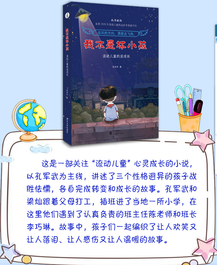 这是一部校园励志小说,一部流动儿童的青春修炼手册。孔军武自卑而单纯,偶尔打架却也有行为底线,老师的关怀、同学的友爱、社会各界的关注给予了他奋发向上的力量。