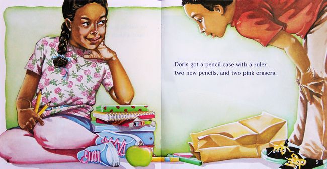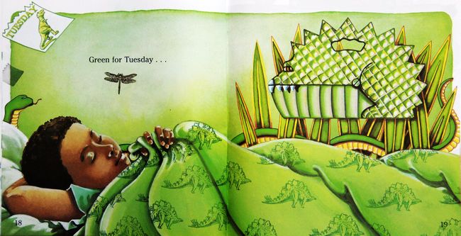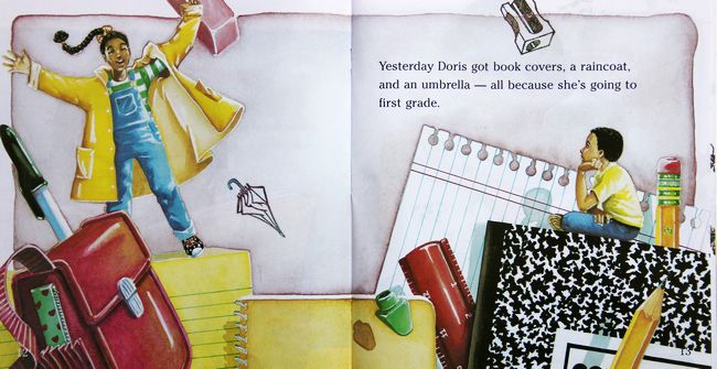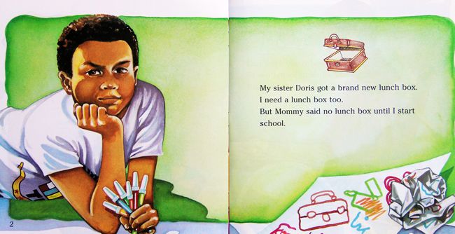 PreSchool-Grade 1 A black girl is beginning first grade and getting all sorts of goodies, in particular a lunch box for which her little brother yearns with a single-minded passion. However, his mother says that he must wait until he starts school. This rather slim plot is fleshed out through a sequence in which the narrator dreams of a brightly-colored, imaginatively-shaped lunch box for each weekday. At last, on his sister's first day of school, their father surprises the boy with a spaceship lunch box of his own. Brightly patterned objects such as shoes, school supplies, marbles, animals, and of course decorated lunch boxes float through the vividly-colored pages. The simple text makes the story suitable for preschoolers. The drama of family relationships is honestly portrayed, although the issue of whether the father has contradicted the mother, which may bother some parents, is buried in the happy ending. Leda Schubert, Vermont Department of Education, Montpelier