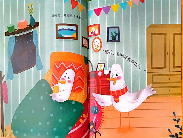 本系列丛书为专注于儿童学规矩绘本,书中塑造了惹人喜爱的动物形象——一只名叫“莎拉”的小海鸥。每个小故事中,作者通过童真的语言、充满吸引力的情节,将“从小懂规矩”的概念植入孩子的心中,引导小朋友养成良好的行为习惯。本分册从莎拉见到新玩具手机引入,讲述她沉迷于玩手机的故事。莎拉吃饭、睡觉、走路都离不开手机,为此她视力下降、撞电线杆、失去了朋友。后来,手机掉进海里,才让莎拉有机会观察身边的世界,她发现自己错过了许多美景,也明白了长期熬夜玩手机的坏处。通过制定时间表,莎拉学会了有计划地使用手机。