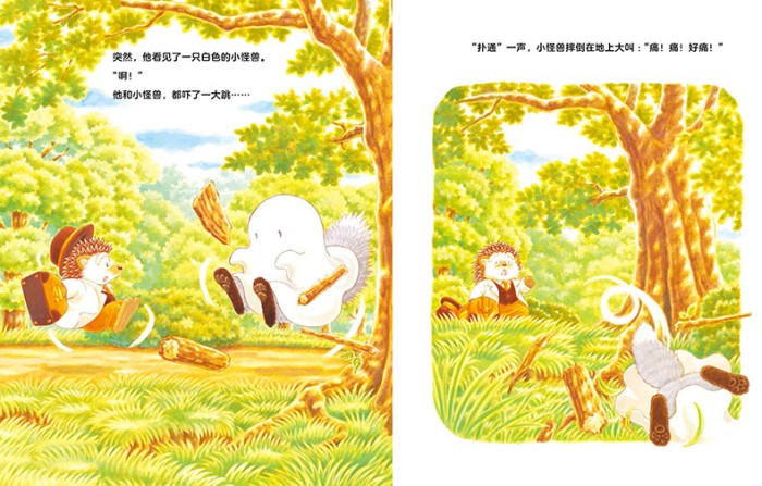 这是一本引进日本的绘本,是《刺猬医生》的续集,是作者福泽由美子引进中国的另一本新作! 有一天,刺猬医生在森林里走着,没想到遇见了一只小怪兽!小怪兽突然“扑通”一声摔倒在地,刺猬医生赶紧上前给小怪兽包扎伤口。原来,这是一只怕羞的“怪兽”,因为害怕见到陌生人,他才会穿的像怪物一样。刺猬医生好心地帮怪兽把他捡到的树枝搬回家,居然发现小怪兽还有一种特异功能?到底小怪兽是什么动物扮的呢?