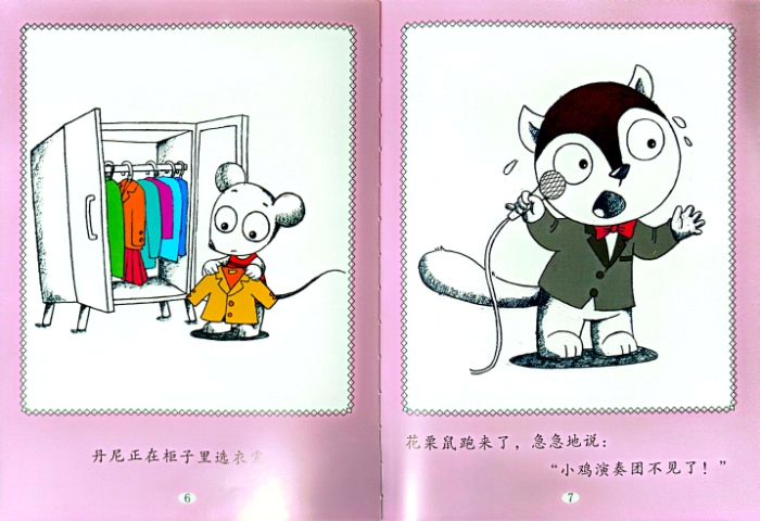 今天晚上,有快乐的森林晚会。花栗鼠换上了帅气的套 装,要当主持人。这时候他发现,小鸡演奏团不见了! 他们四处打听小鸡的去向。大家都摇头,没看到。如果 没有演奏团,那整个晚会不要闷坏了?花栗鼠急得要哭 了。丹尼在空旷的草坪上找到了七只小鸡。他们正在为 怎么排队型烦恼。“我们要每排三只,七只一起上场。” 其他小鸡说,“排不好,不演奏。"“这个嘛一一”丹尼想了 想,“我来帮你们”。瞧,七只小鸡终于登台表演了。想 知道丹尼怎么帮他们排的队形吗?