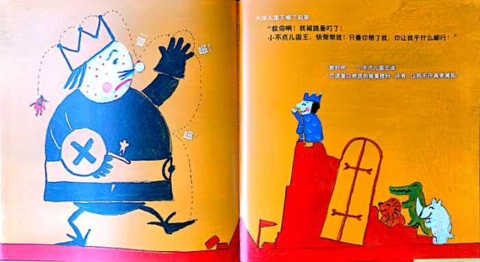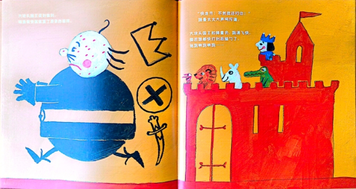 以轻松、明快的色彩,简单的重复性对话向小朋友讲述了一个结局出乎意料的有趣故事。一天,一位野蛮的国王要来攻占小国王的城堡,小国王英勇迎战,先后派出了狮子、犀牛、鳄鱼,但没有想到的是,最后战胜野蛮国王的,竟然是……这是个可爱逗趣的故事,莞尔一笑之余,也会启发小朋友思考。作者巧妙地运用孩子的逻辑和语言,真切地描画出他们自由想象的历程。整本书用简单诙谐的文字配以明亮活泼的图画,再现了孩童想象王国中的冒险故事。是一本妙趣横生,非常适合和小读者互动的精彩故事绘本。